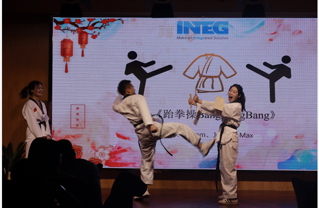不得不說我們INTEG佳人們,太美了叭,怪不的說“城門外危難之間~英雄一怒為紅顏~就只看了你一眼,便決定了永遠(yuǎn)~”下面有請倉庫部的Elvis給我們帶來一首好聽的歌曲《醉千年》 欣賞完了旗袍秀和歌曲想不想再來一個勁爆的節(jié)目。跆拳踢木板+跆拳舞BangBangBang