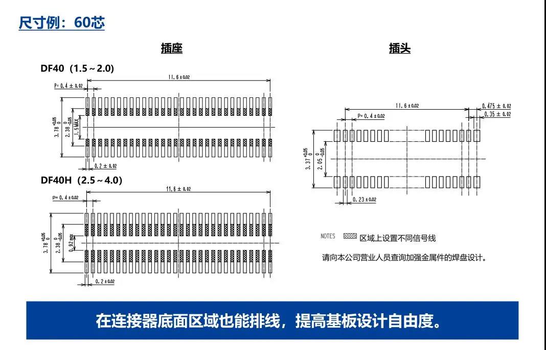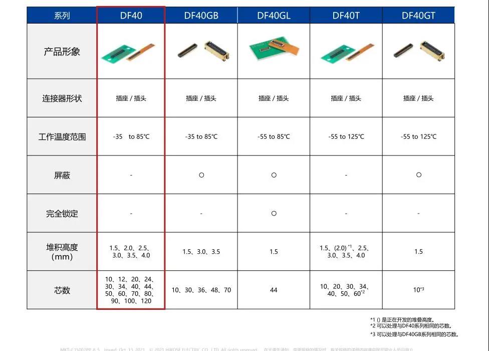 7. 種類繁多(帶護(hù)罩:DF40G系列,帶完全鎖:DF40GL系列,ADAS:DF40T系列) 8.核心數(shù)量從10到120核心變化巨大 9.用導(dǎo)向肋確保自動(dòng)對(duì)準(zhǔn):0.33mm 10.防止鎳阻擋層焊接的結(jié)構(gòu) 11.還提供用于生產(chǎn)線檢查的高度耐用的連接器* 只有H=1.5 mm的產(chǎn)品支持Type-C